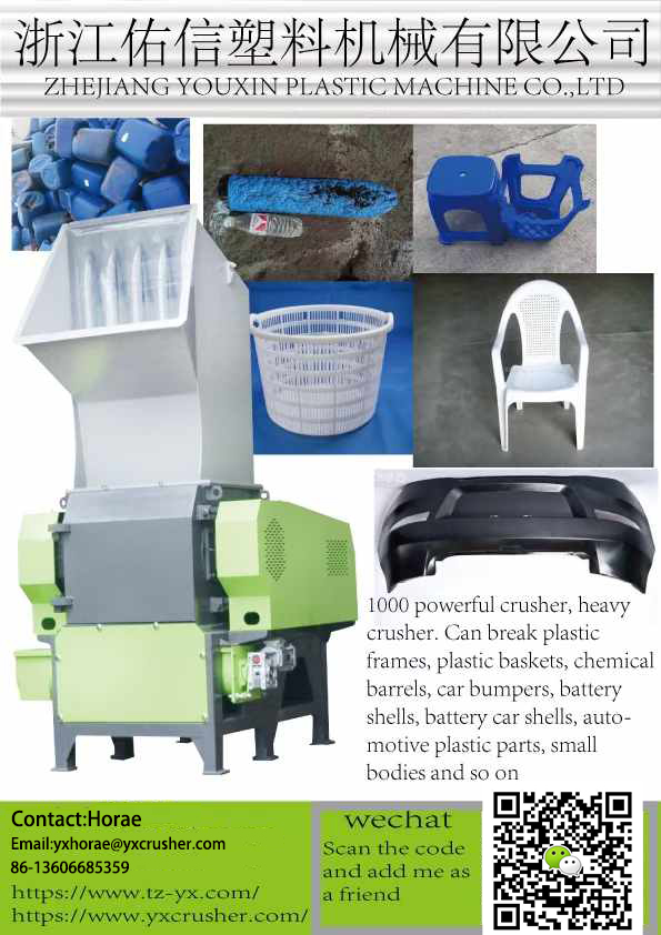 Công ty Youxin cung cấp một loạt các máy nghiền nhựa. Có những người nghiền nhựa tiêu chuẩn đáp ứng nhu cầu nghiền nhựa nói chung; Các ống phun nhựa có thể nghiền nhựa vào các hạt mịn hơn; và máy nghiền công suất cao phù hợp cho các vật liệu nhựa đầy thách thức hơn. Ngoài ra, họ đã phát triển các chất nghiền chuyên dụng cho các mặt hàng cụ thể như giỏ trái cây, máy nghiền chuyên dụng cho nhựa loại phim và thậm chí là máy xé lớn cho túi TON, được sử dụng để xử lý bao bì nhựa số lượng lớn.